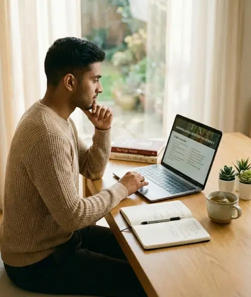 Experience a deeply researched syllabus that perfectly balances traditional healing systems (like Ayurveda and Yoga) with modern therapeutic standards.
